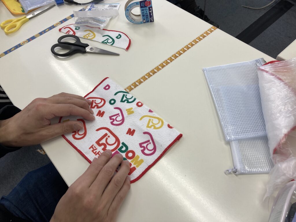 使いたい絵柄がある場所を選び、ポーチの大きさに合わせてハンカチをカットしていきます✂✂