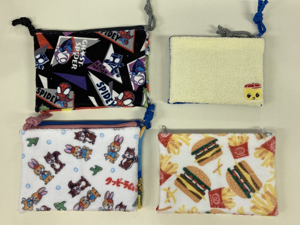 両面、絵柄が違うポーチが出来上がります!!材料はすべて100均です💡