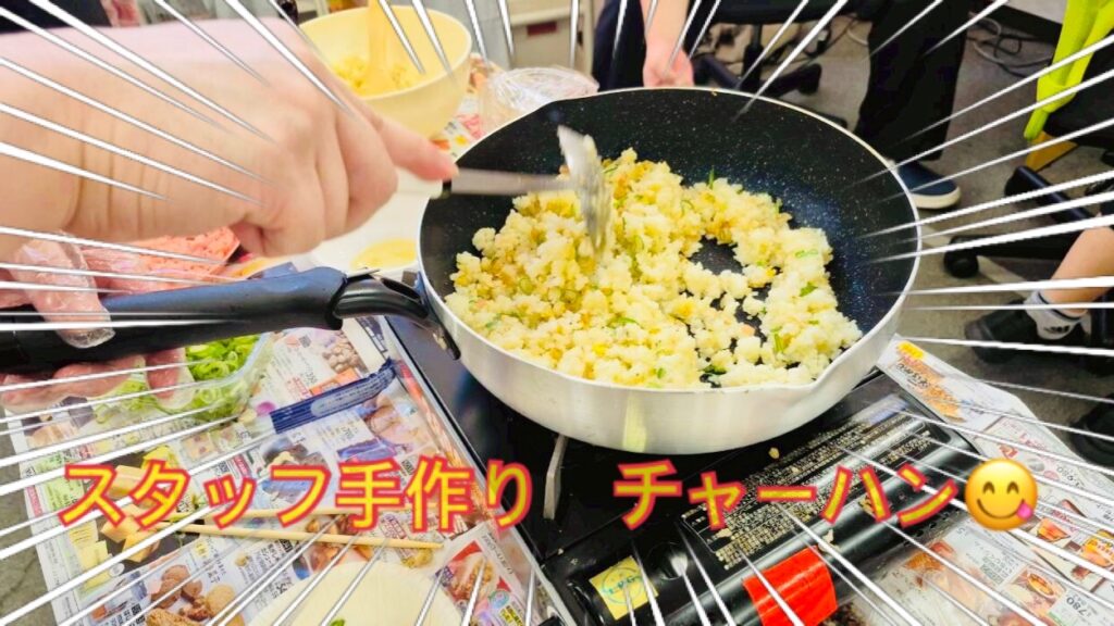 とあるスタッフ秘伝!?のレシピにより朝から仕込みを行い、とてもおいしい本格チャーハンが完成しました!