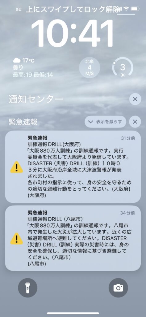 今朝10過ぎ、皆さんビクッとされたでしょう。突然けたたましく鳴る携帯…