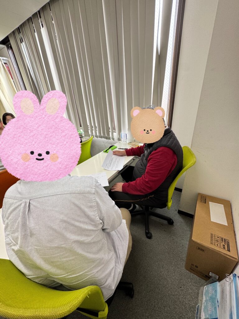実際に来所して頂き、事業所の雰囲気を見てもらったり、お話を伺わせて頂きます。オンラインも可能です。