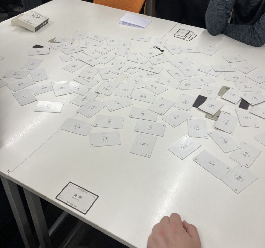 それらをJ-popなどの曲を流し、歌詞と同じものがかかれた札があればかるたのように取っていくゲームです!!