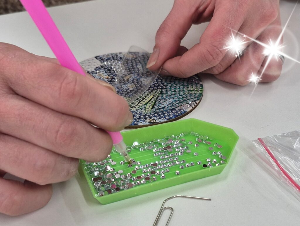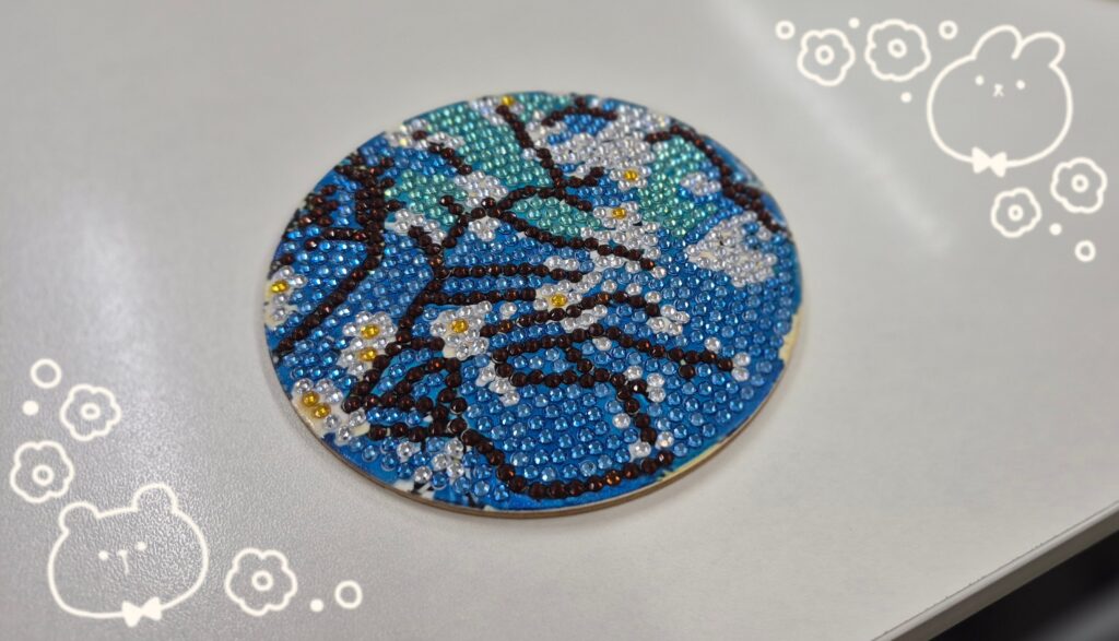 ダイヤモンドアートとは、小さなビーズを台紙に一つずつ貼り付けて模様を完成させていくアート作品の一つです。