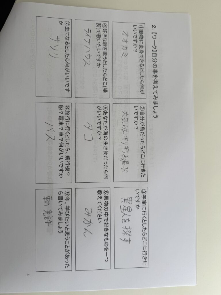 自分の内側を探るワークを行いました。