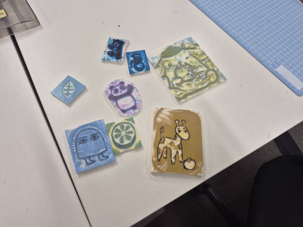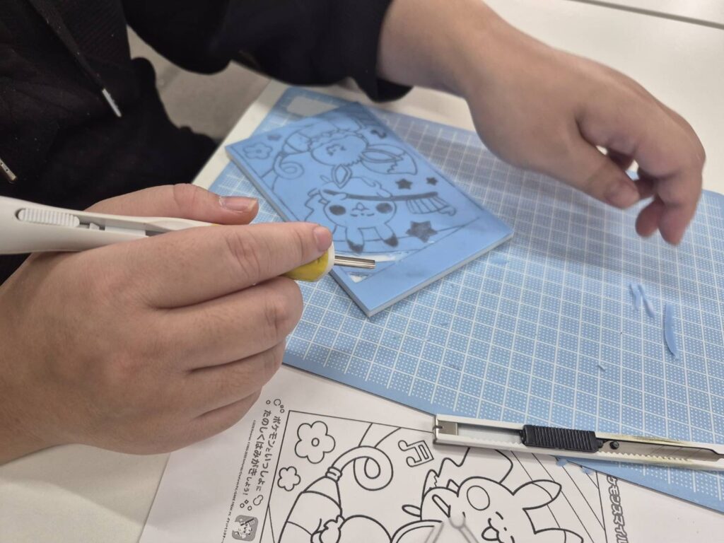 気に入ったイラストを消しゴムにトレースしていただきー