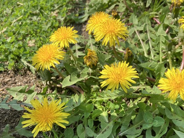 やさしい気候になじんだタンポポなどの花やクローバーが見られ、