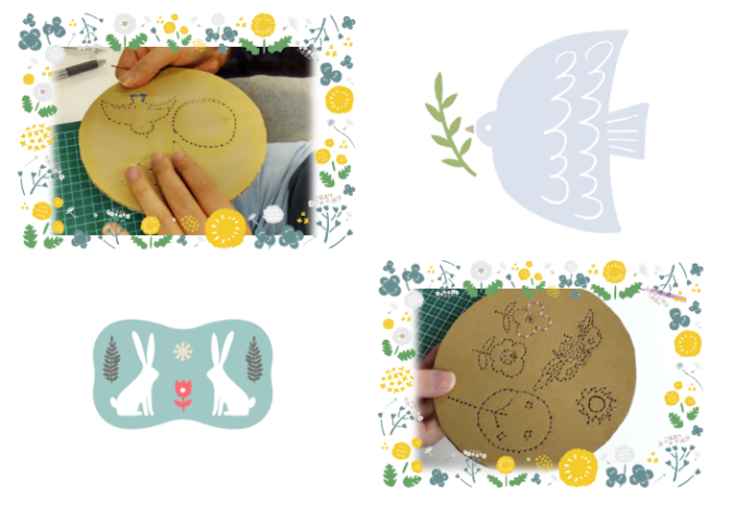 まずは段ボールに図案を写し 線の上に間隔をあけながら穴を開けていきます🪄