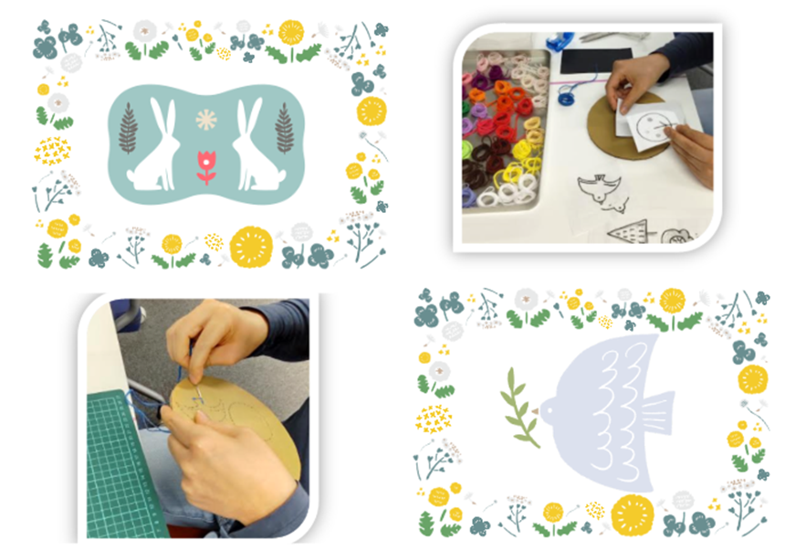 その後 刺しゅう糸を糸とじ針に通し ひと針ひと針縫い進めていきました🪡