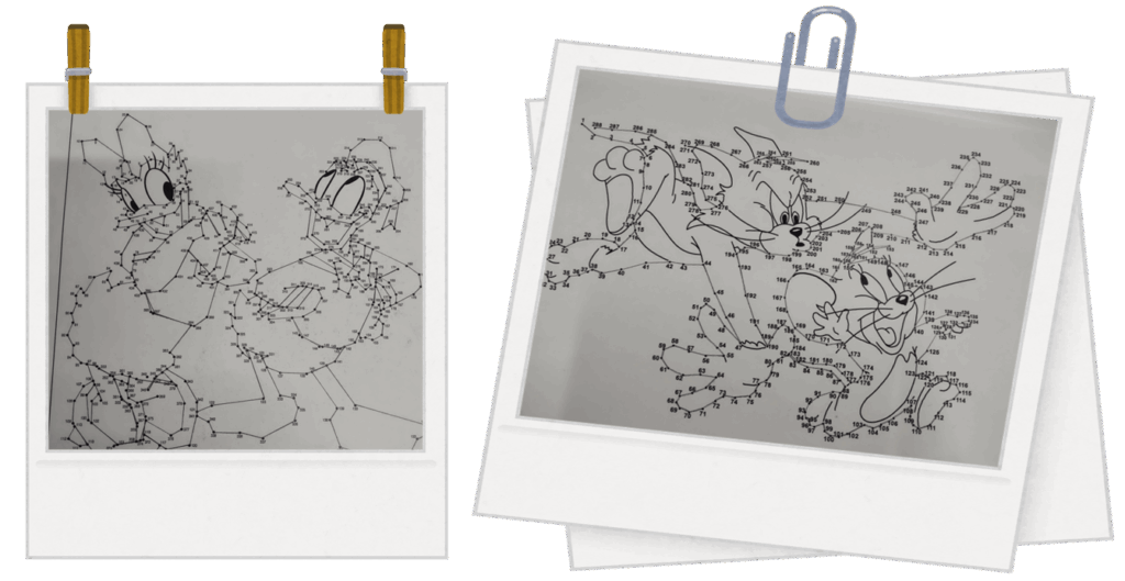 レベルについては、単純に「つなぐ点の数が多い」ということだけではなく、絵が細かく、点と点を結ぶ線が重なっていたり、次の点がかなり離れていて見つけにくかったり…また、線が行ったり来たりでしっかりと集中が必要だったりと、色々な理由があります。