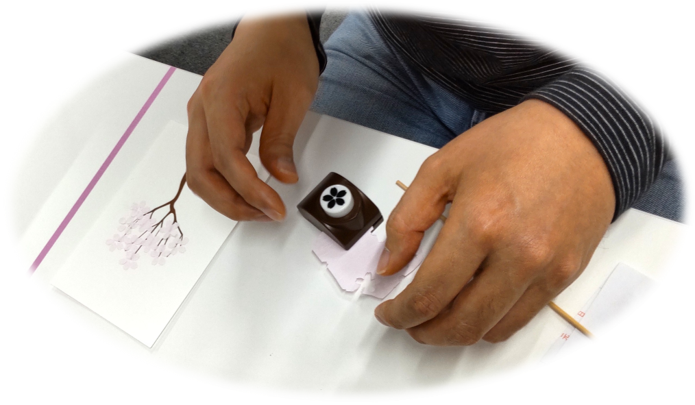 色とりどりの色紙と花型パンチを使って、