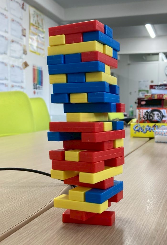 ジェンガは皆さん初めてのようで、おそる手を伸ばしておられ「あれっ」