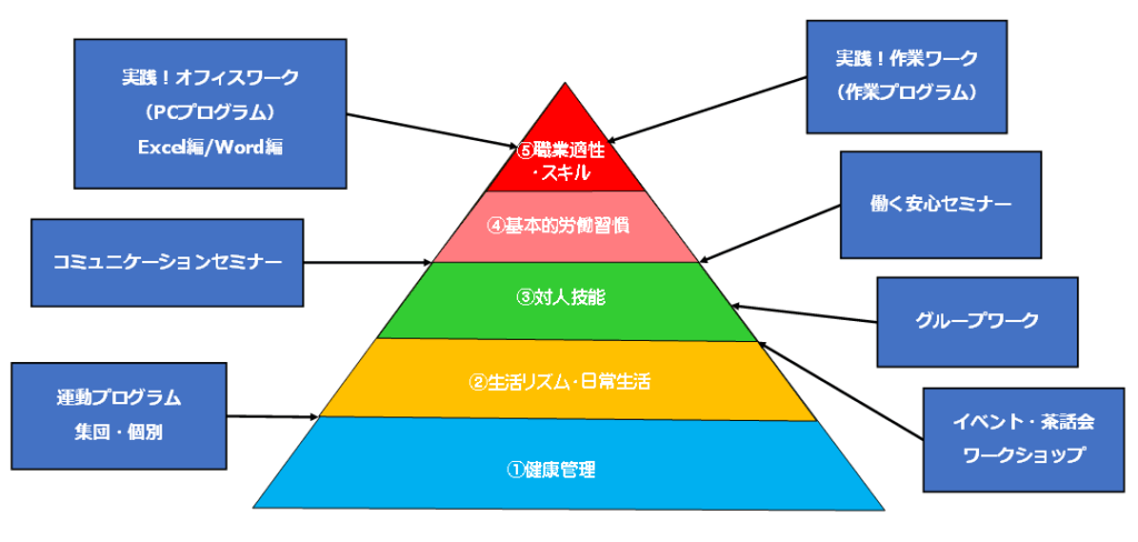 「職業準備性ピラミッド」に沿ったプログラムを提供しています!
