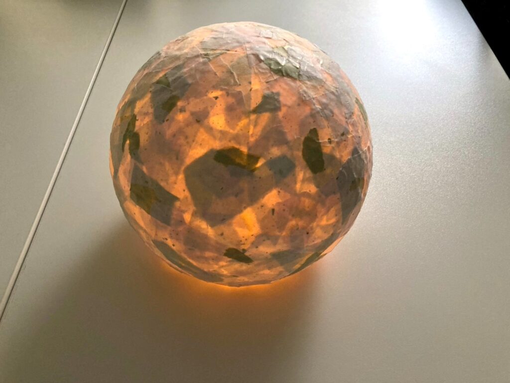 翌日以降にひも、和紙部分が固まっている事を確認して、中の風船を割ります。