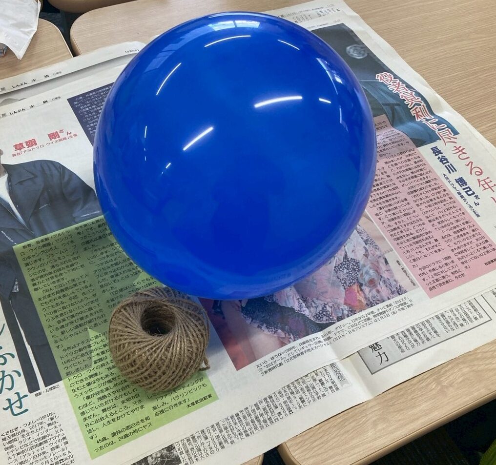 この風船に巻き付けたり、貼り付けたりしていく流れになるので
