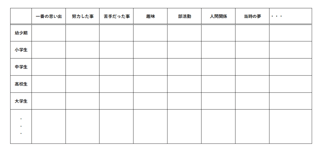 人生を振り返り、子供の頃から現在の出来事を年表のように書き出すことで、