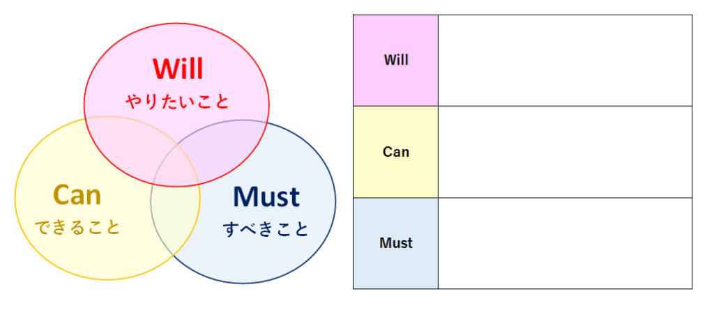 Will(やりたいこと)・Can(できること)・Must(すべきこと)の