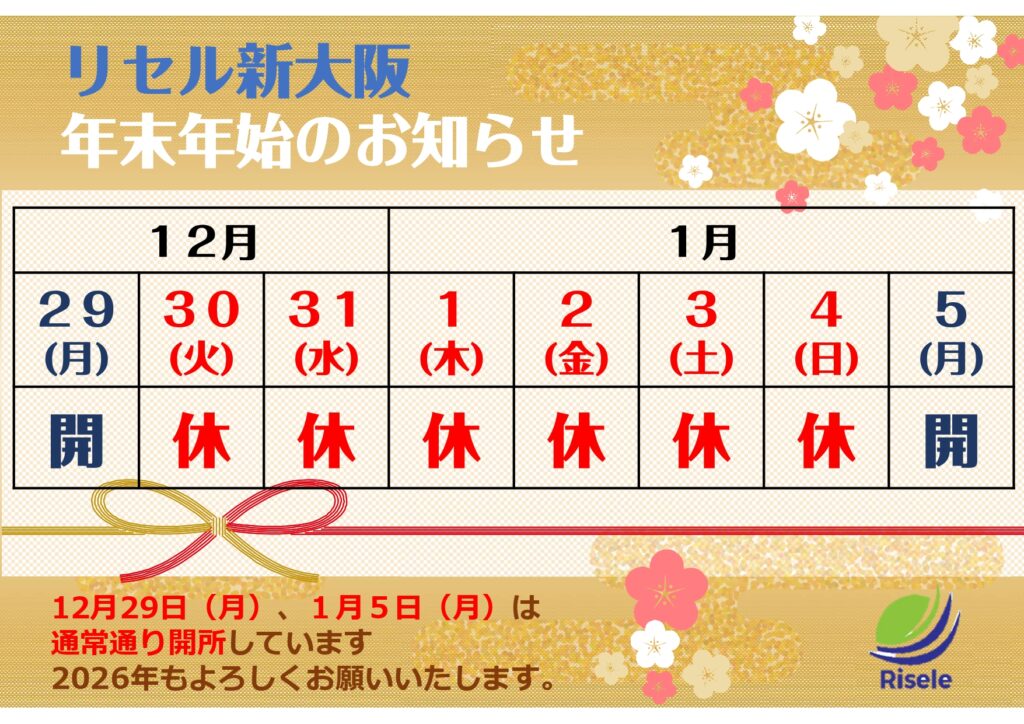 🐍リセル新大阪・年末年始のお知らせ🐎