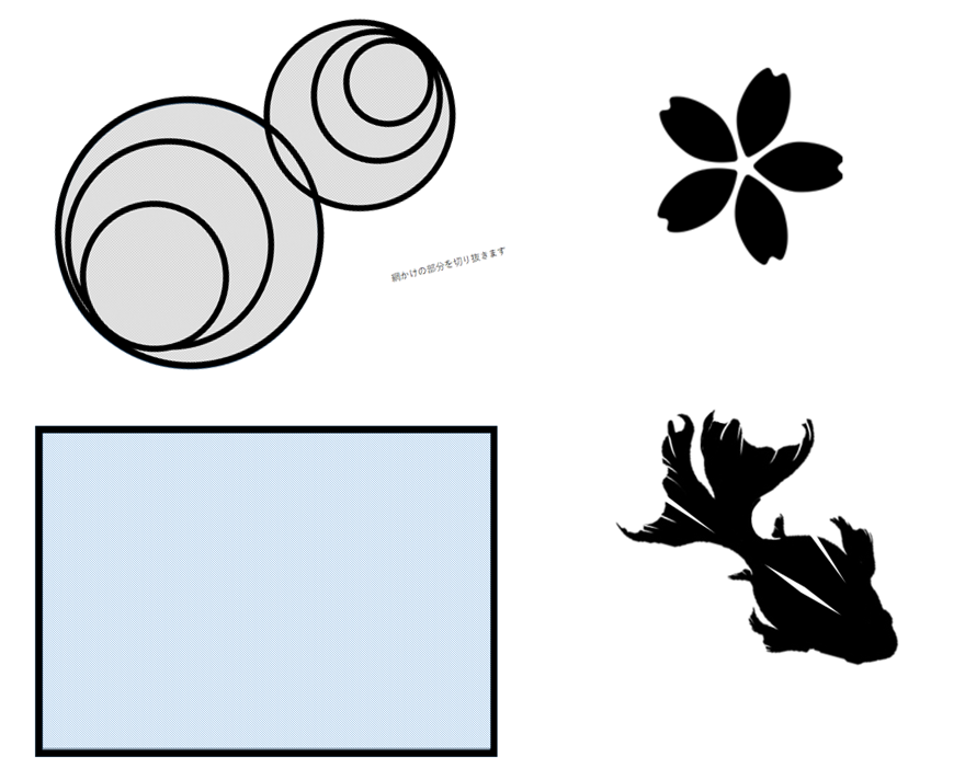 細い図形もありますので、隣の図形まで切り取ってしまわないように